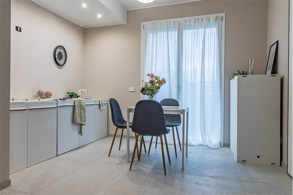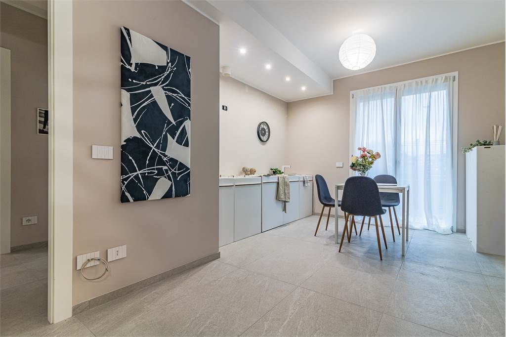 Entrando nell’abitazione si viene accolti da una luminosa zona giorno open space che unisce soggiorno e cucina in un ambiente moderno, funzionale e ideale per vivere ogni momento della quotidianità.