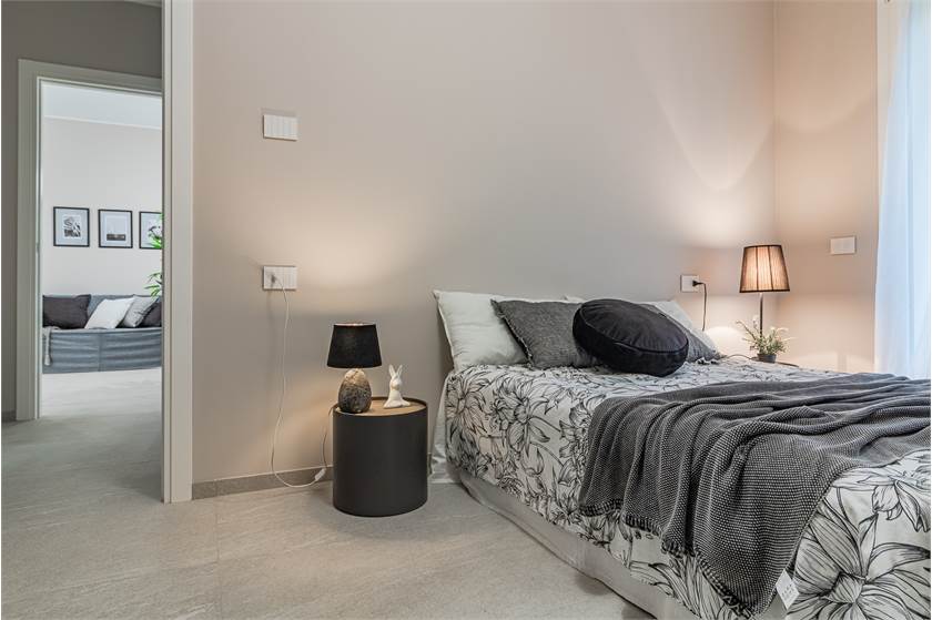 Entrando nell’abitazione si viene accolti da una luminosa zona giorno open space che unisce soggiorno e cucina in un ambiente moderno, funzionale e ideale per vivere ogni momento della quotidianità.